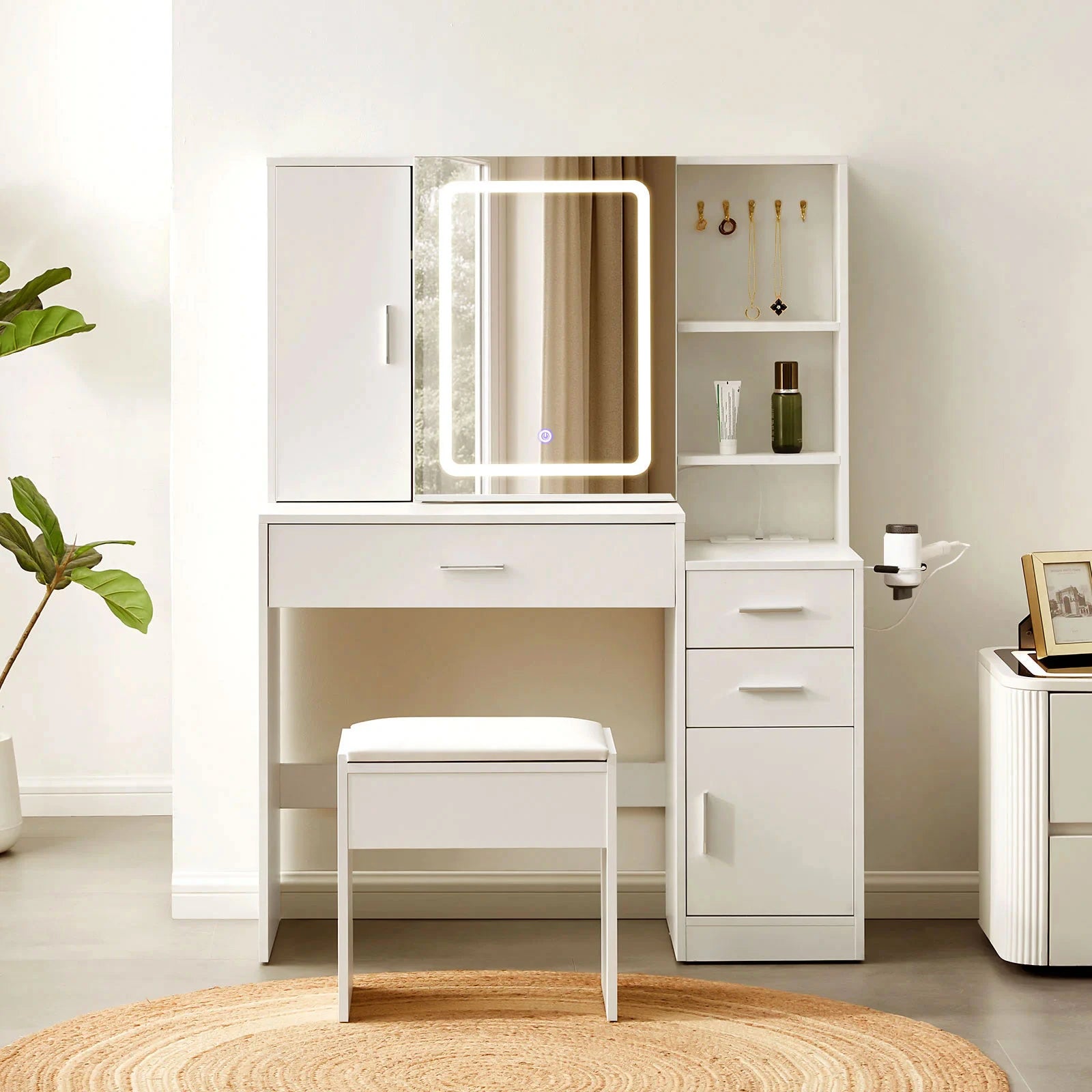 Built-In Charging Station & Hairdryer Holder