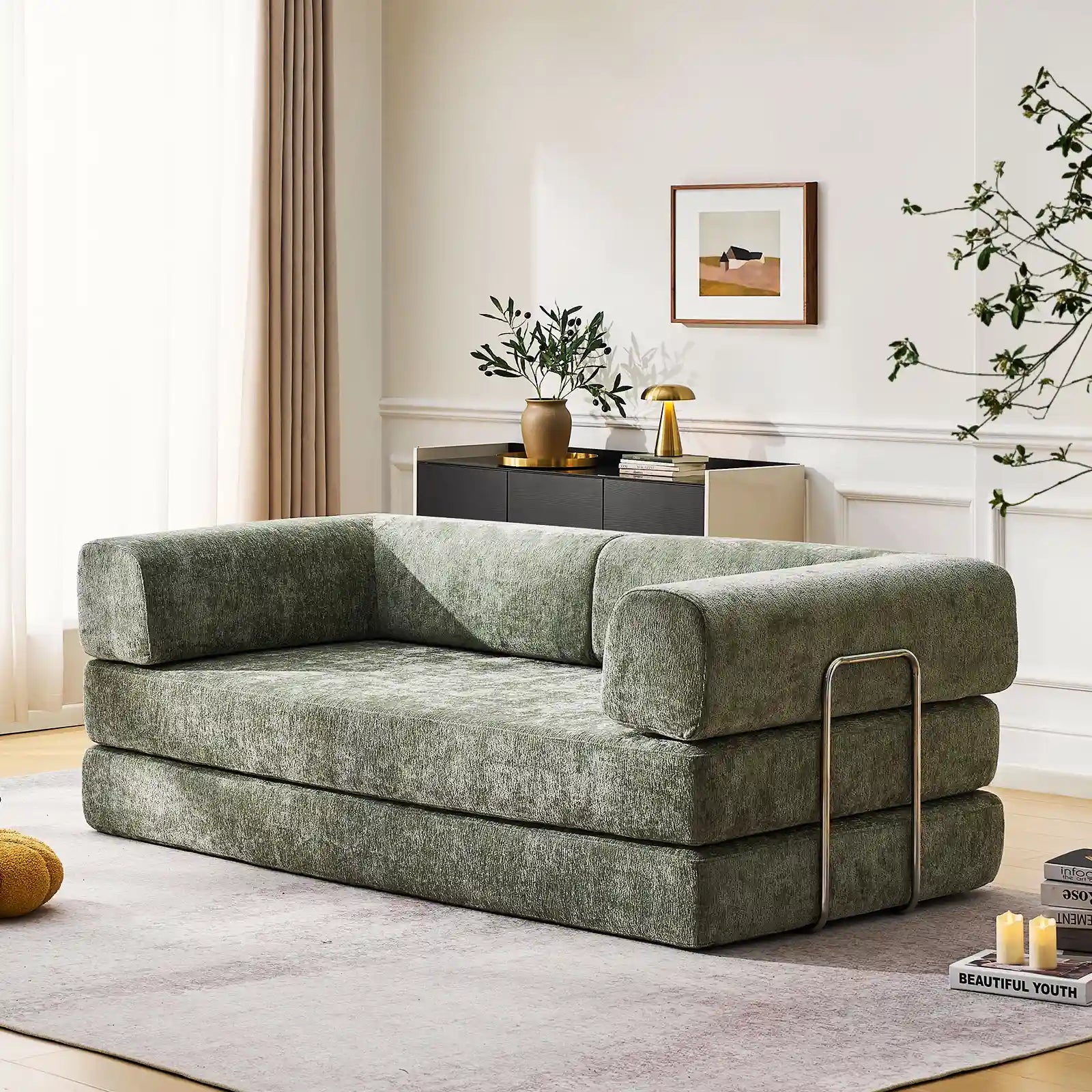 Upholstered in plush chenille—soft, durable, and beautifully tactile. High-resilience cold foam (40D) offers firm, balanced comfort that supports your body and keeps the sofa's shape over time.