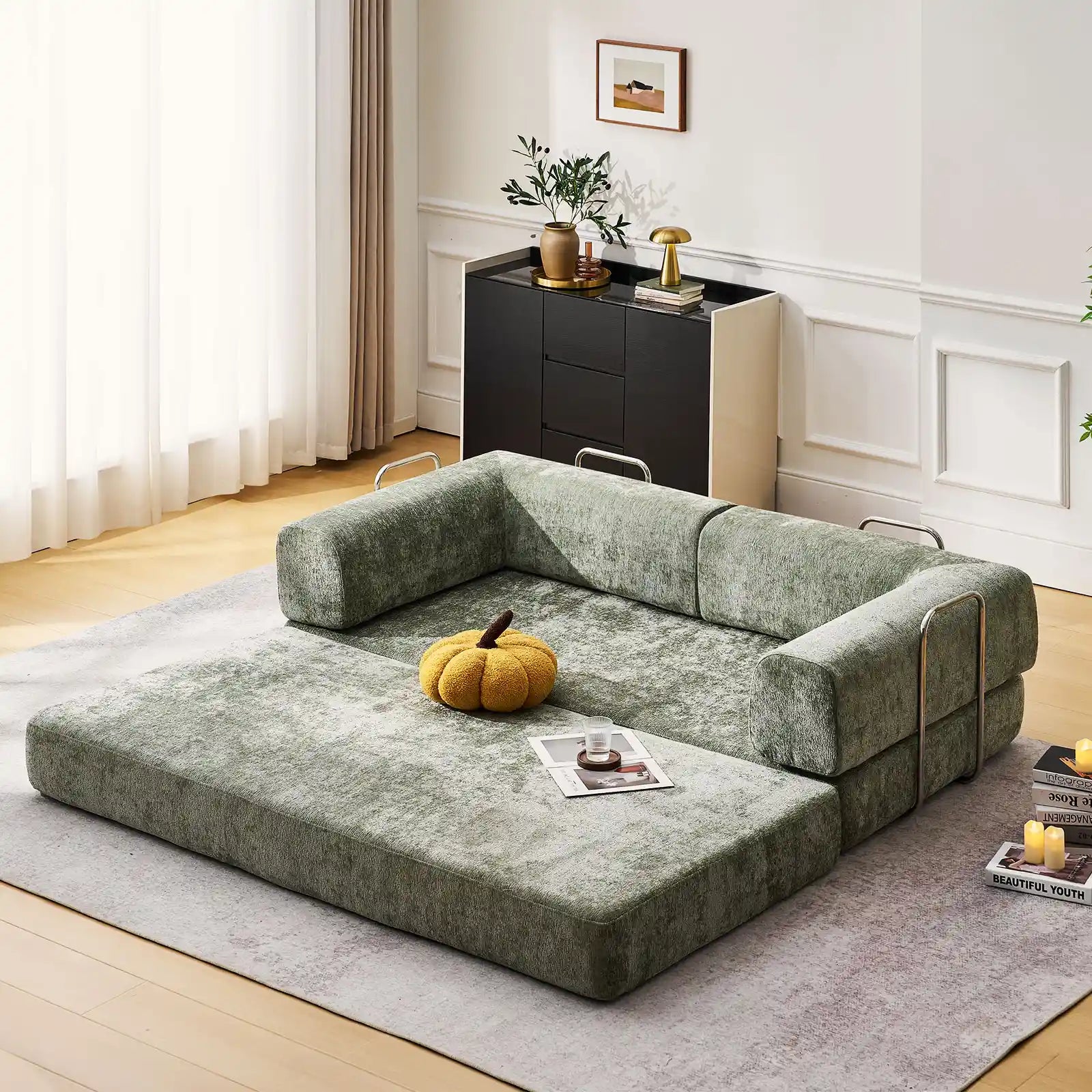 Simply unbox and watch it expand, just instant comfort—Hugo effortlessly transforming from compact packaging into a versatile multi-function sofa bed.