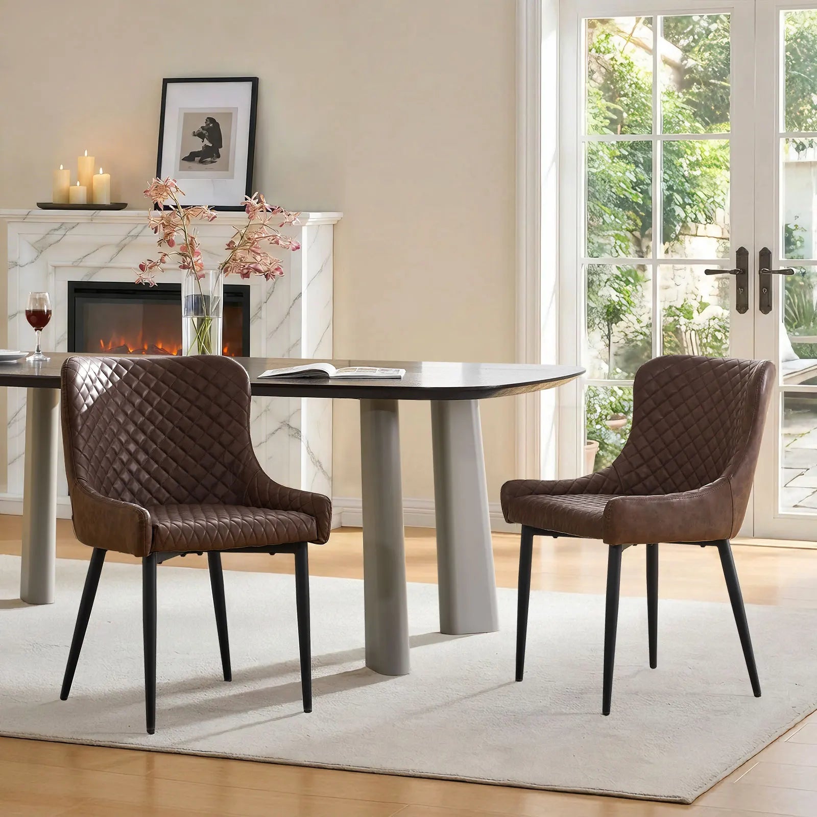 Strong metal legs provide reliable support and everyday stability, making this faux leather dining chair set a stylish and dependable choice.