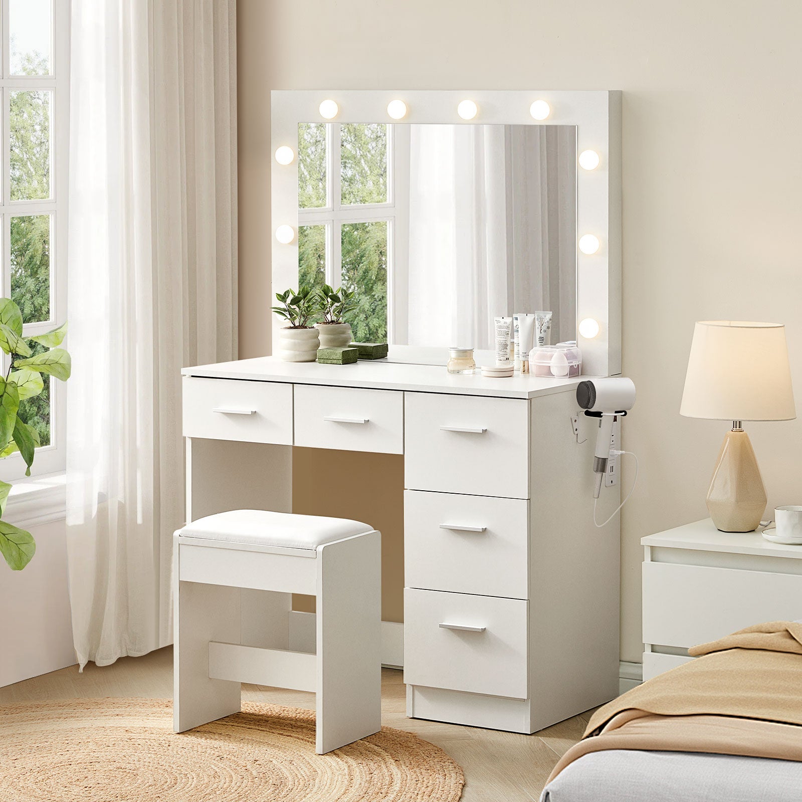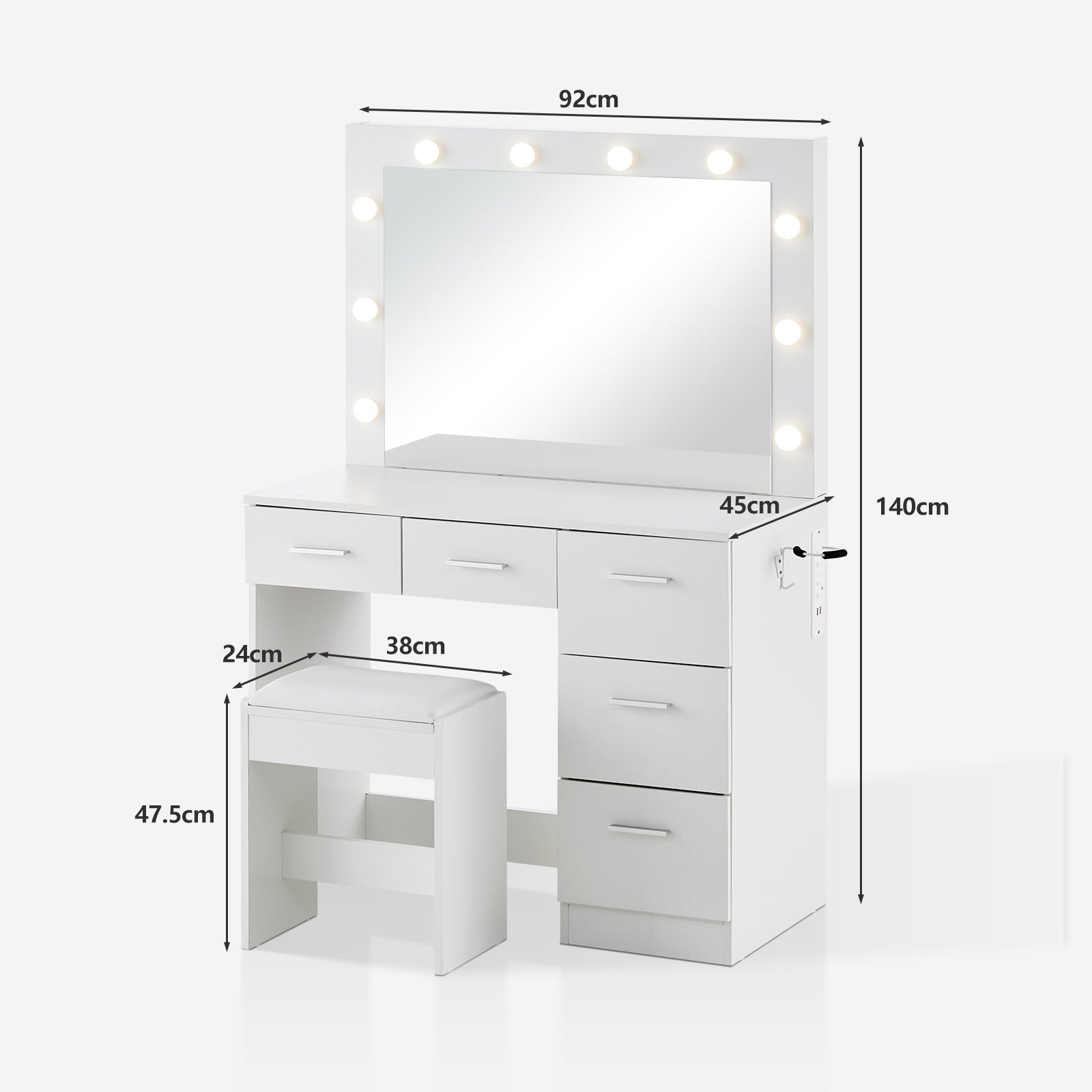 This dressing table with Hollywood lights brings a neat and modern style to your bedroom.