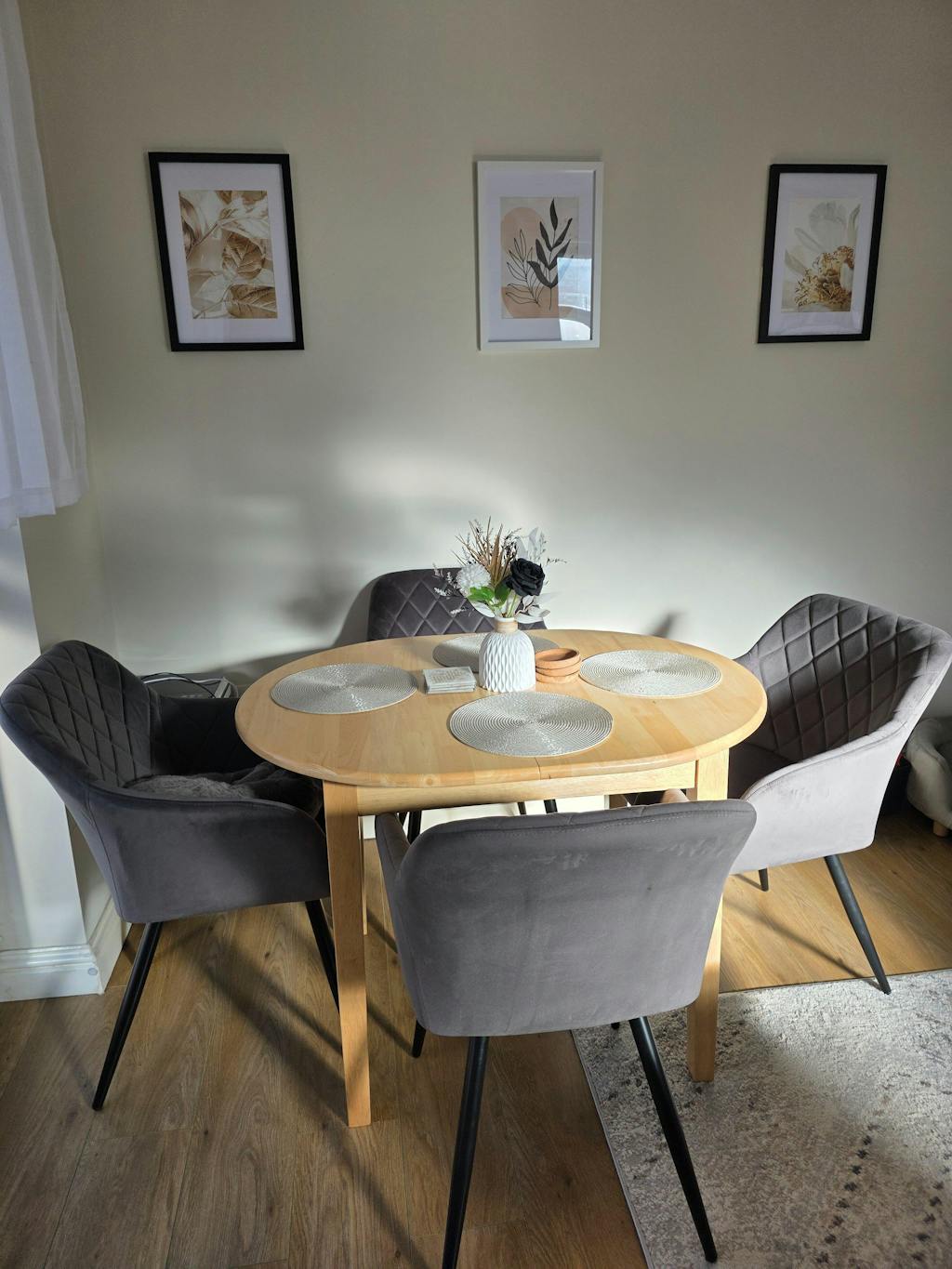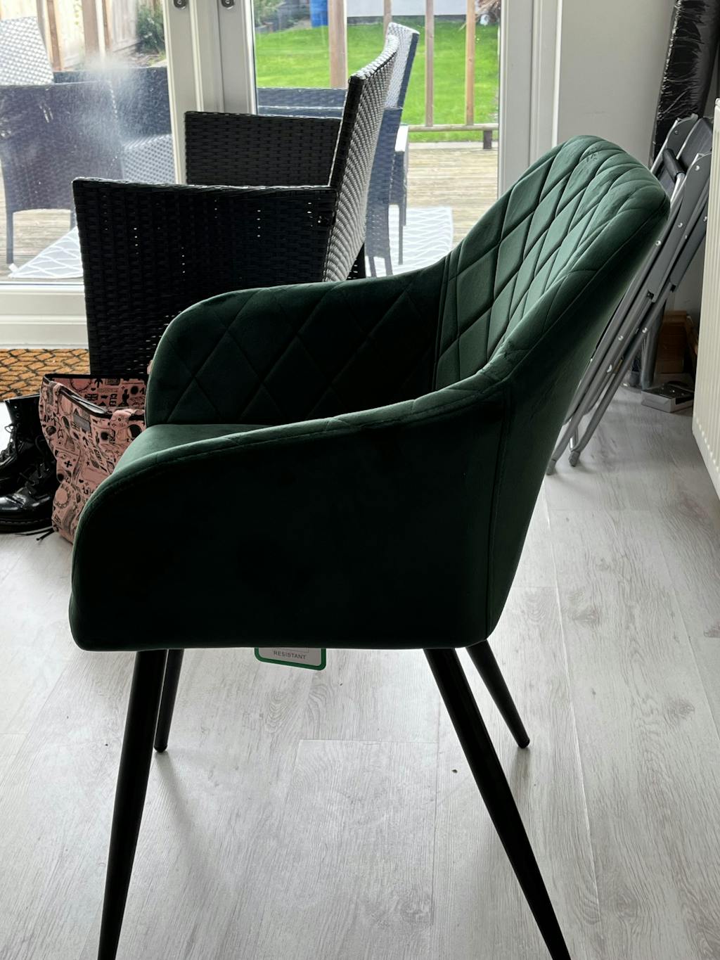 Featuring a distinctive diamond-stitched backrest design, the Moree velvet dining chair adds a welcoming contemporary touch to your dining room.