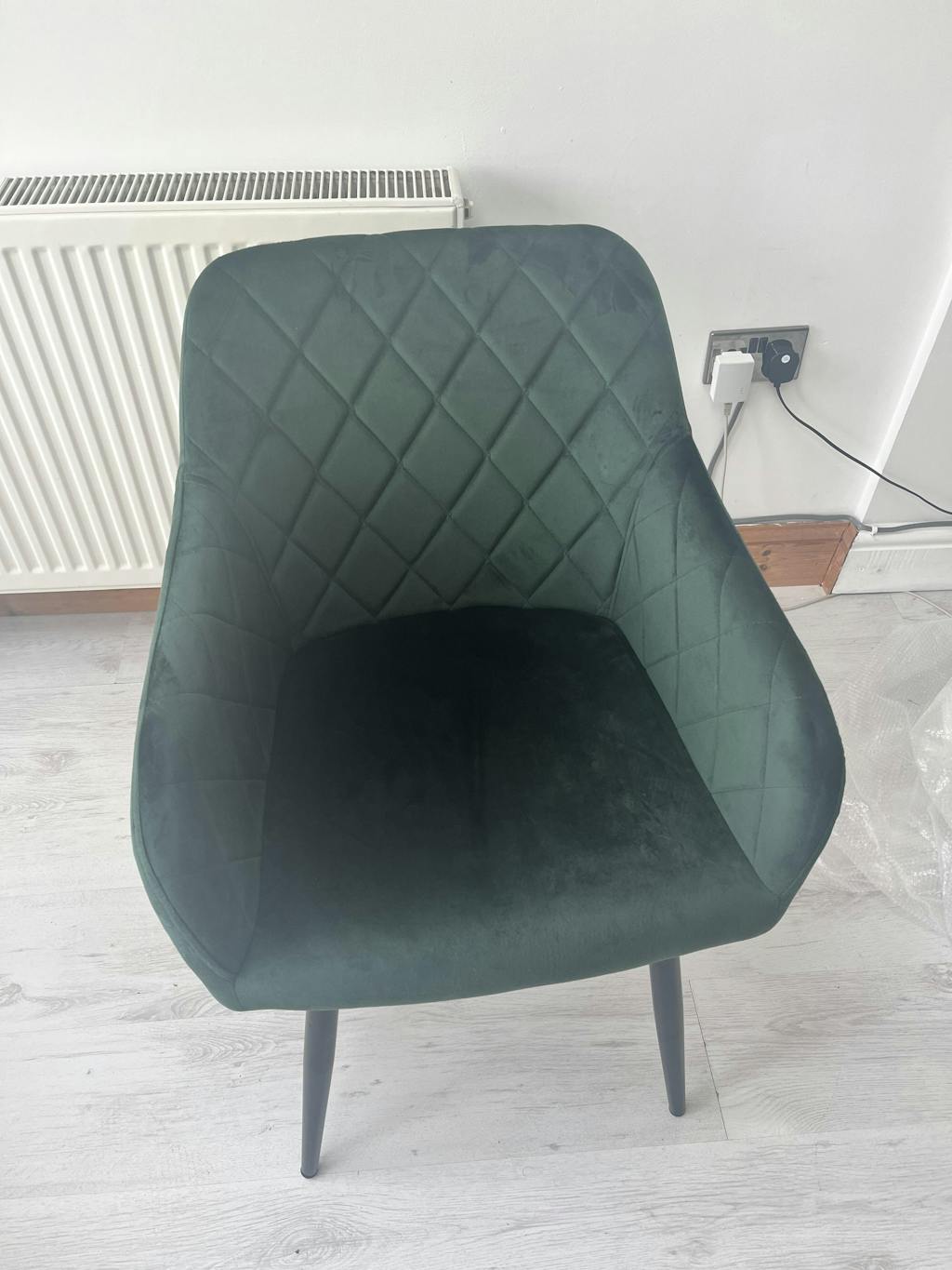 Moree Dining Chairs feature black metal legs that complement the velvet upholstery, ideally suited as a dining or accent piece for your dining room, kitchen, living room, lounge room, office, or hallway.