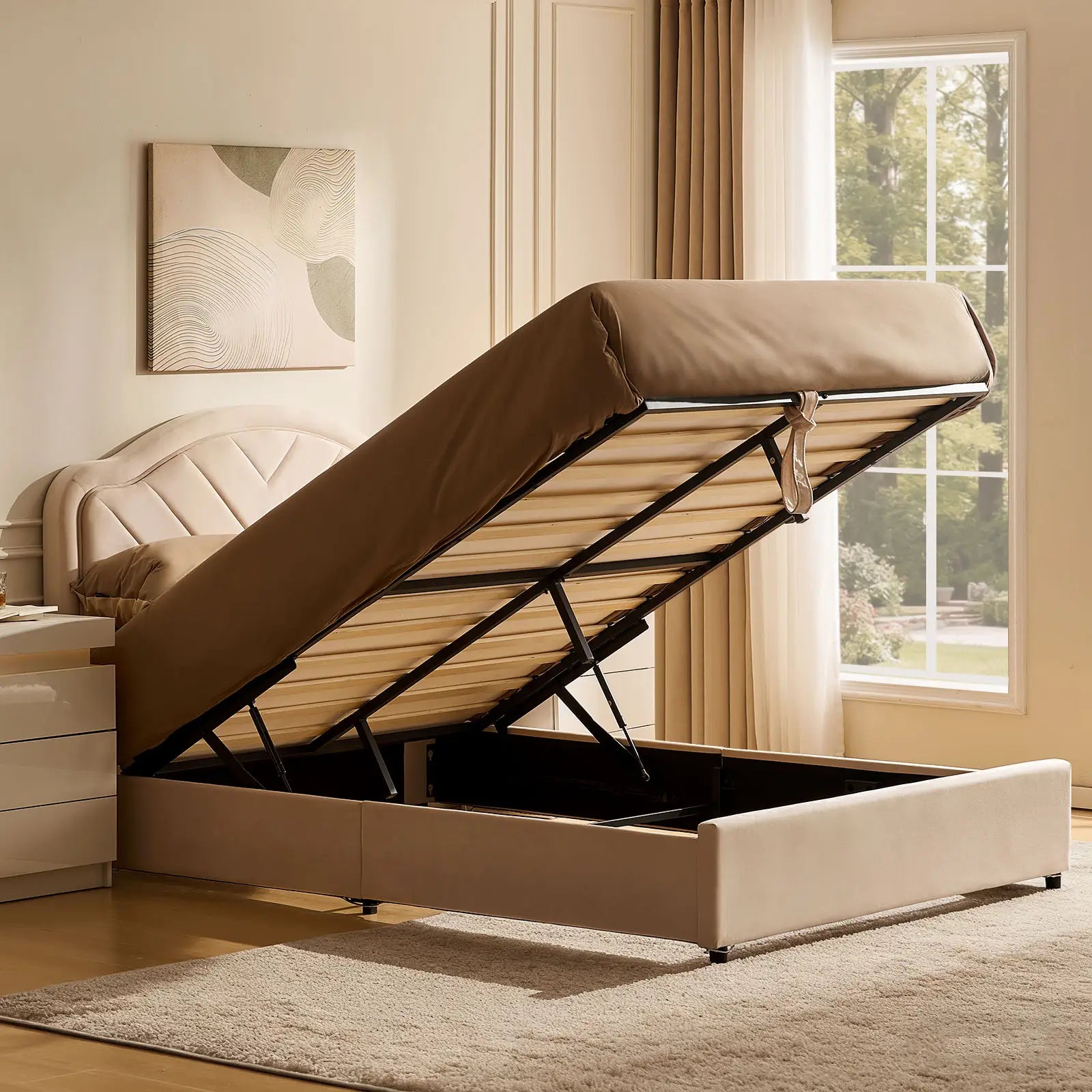 Designed as a double bed with storage, Luniva offers an easy hydraulic lift-up system that reveals a roomy, discreet space for bedding and essentials.