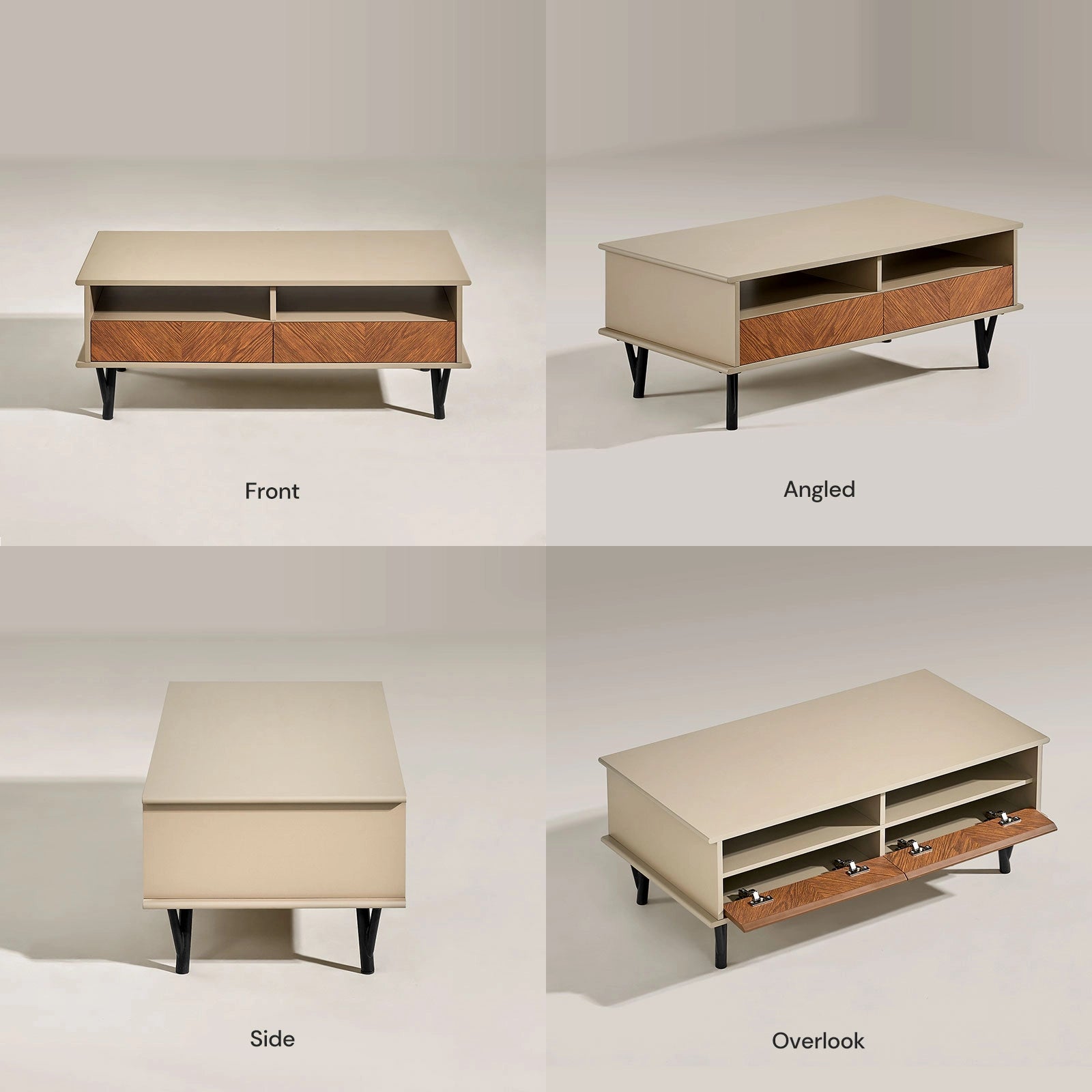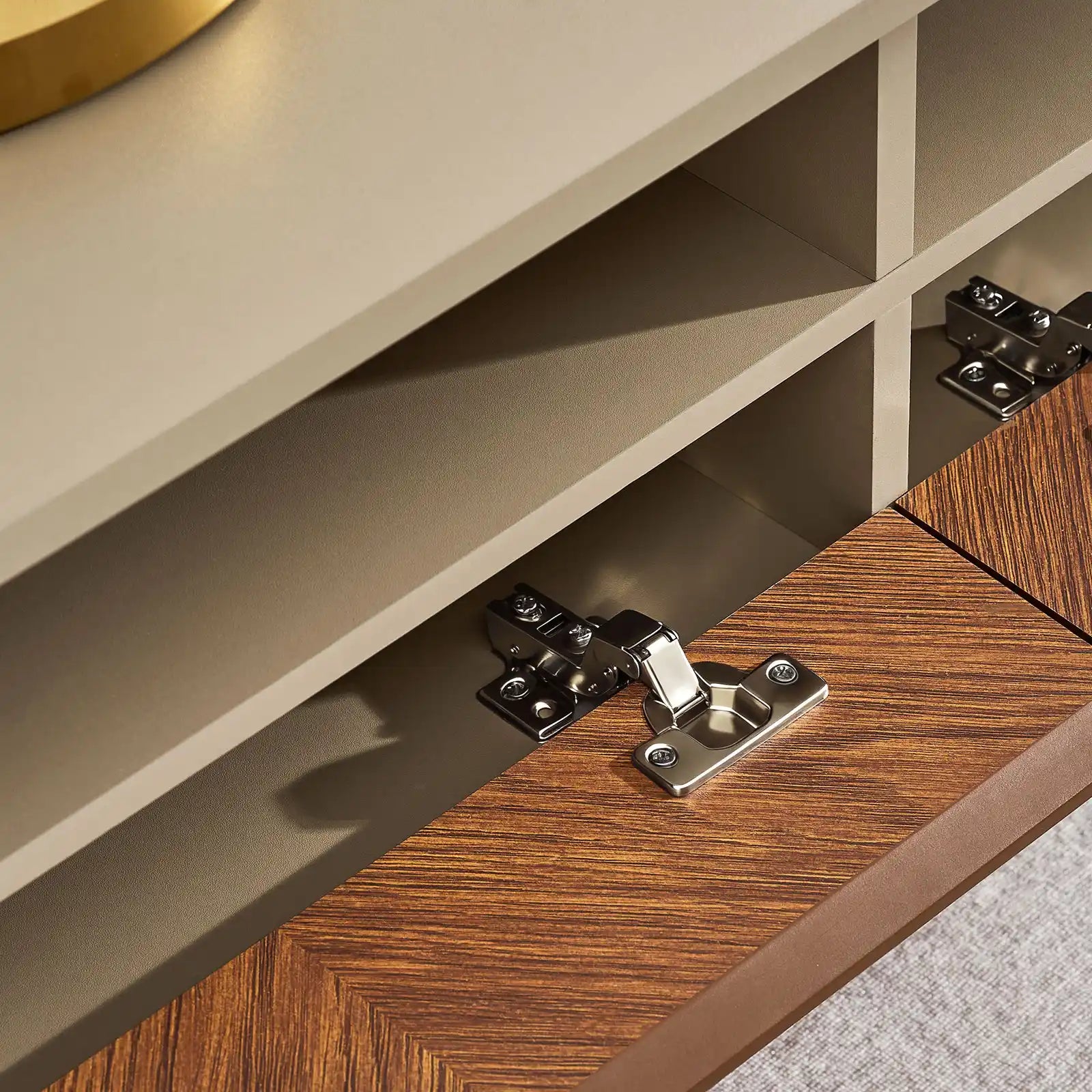 Keep your living space neat with 2 open shelves and 4 hidden compartments, perfect for organising accessories. The drop-down doors offer easy access and a cleaner design for daily use.