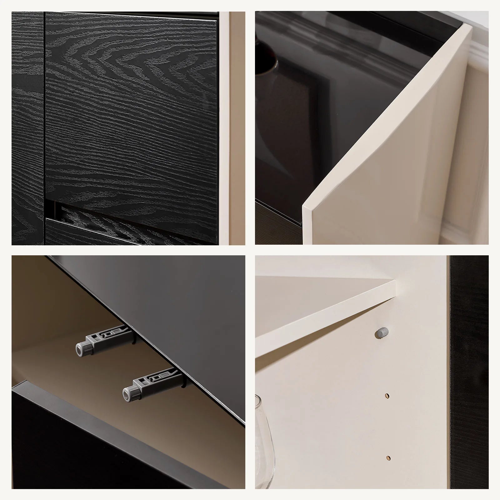 A thickened top panel supports serving dishes with ease, while the integrated cabinet structure enhances stability. Push-to-open fittings provide easy, handle-free access. The recessed base allows the cabinet to sit flush against the wall.