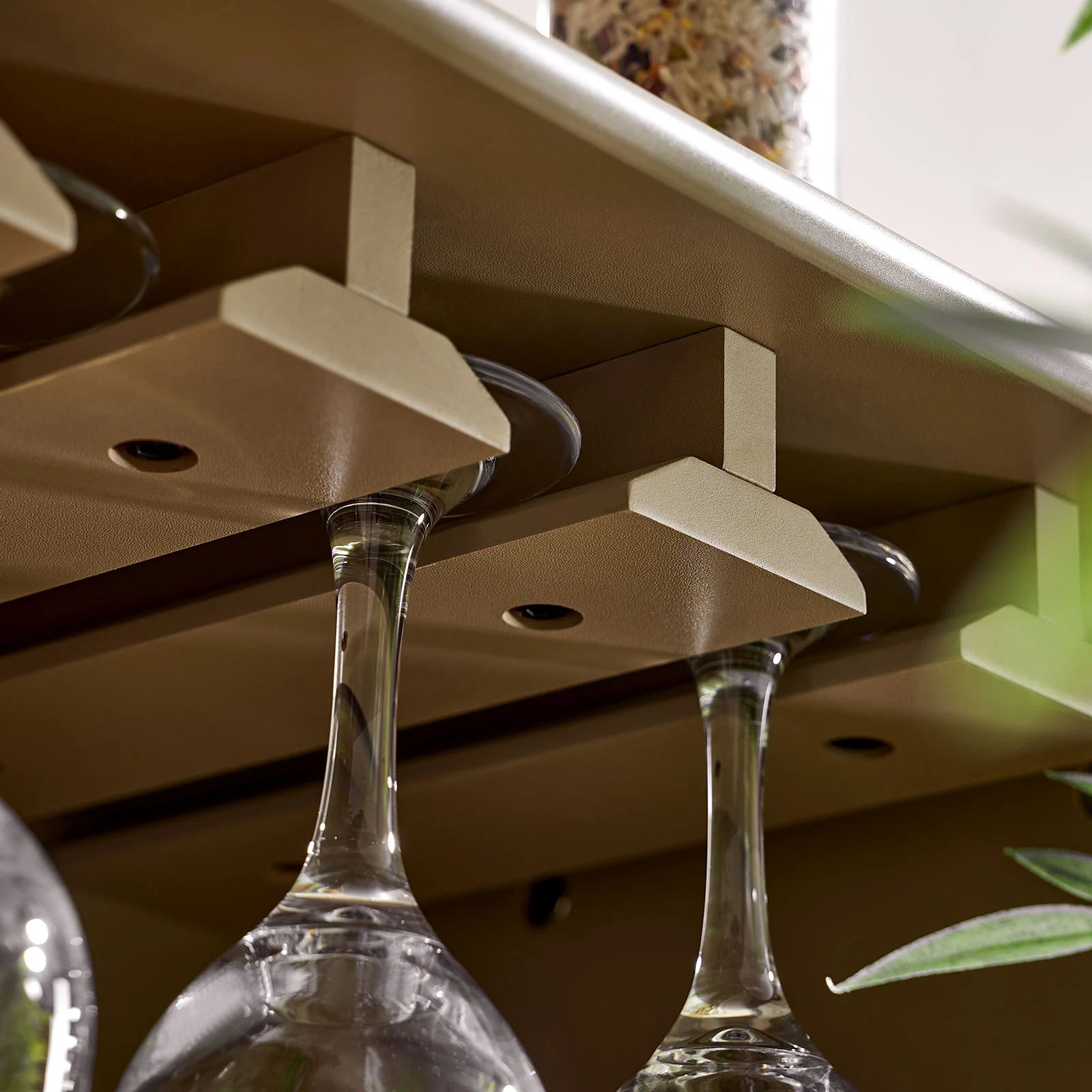 Featuring two cupboard doors, three open shelves, a 12-bottle wine rack, and three rows of glass holders, the Milano bar buffet keeps your wine collection neatly displayed and ready to enjoy.