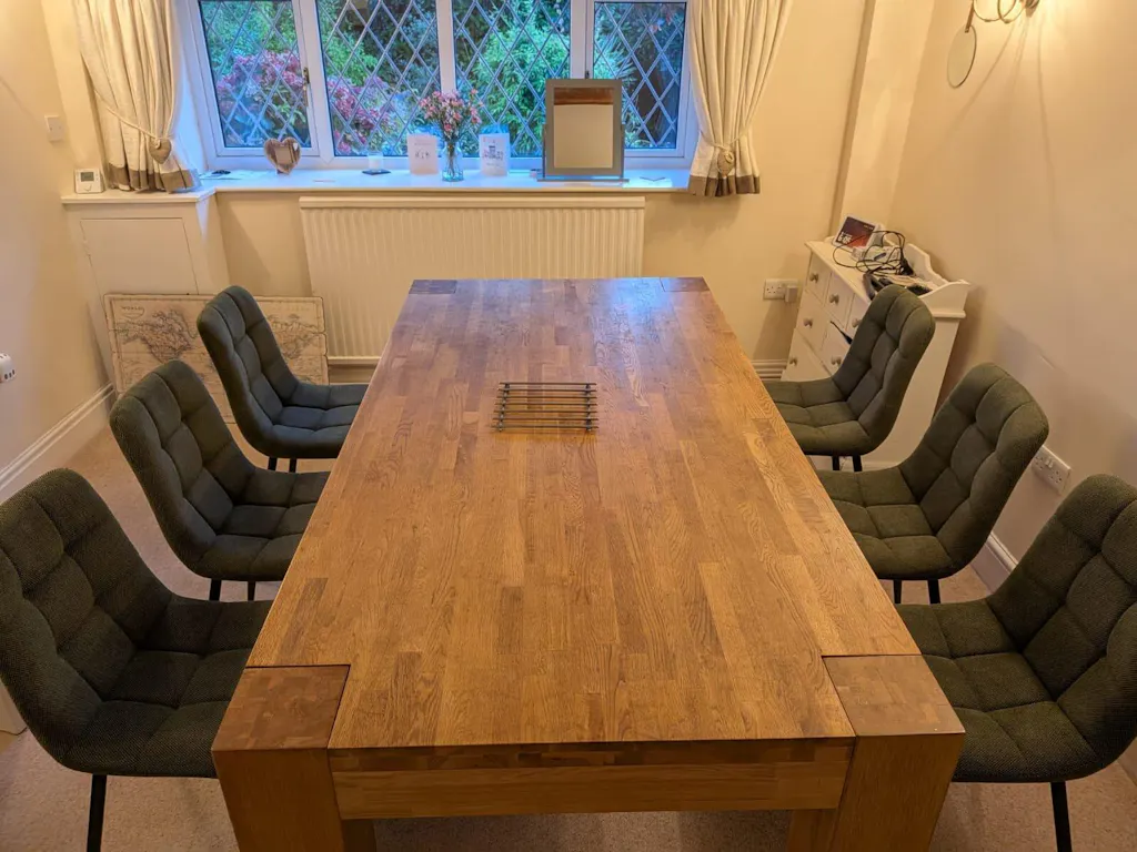 Perfect size for me, perfect colour for my dining room, easy to assemble. Might need slight tweaking on the pads for the feet. Didnt take more than 5 minutes to adjust. Would buy again