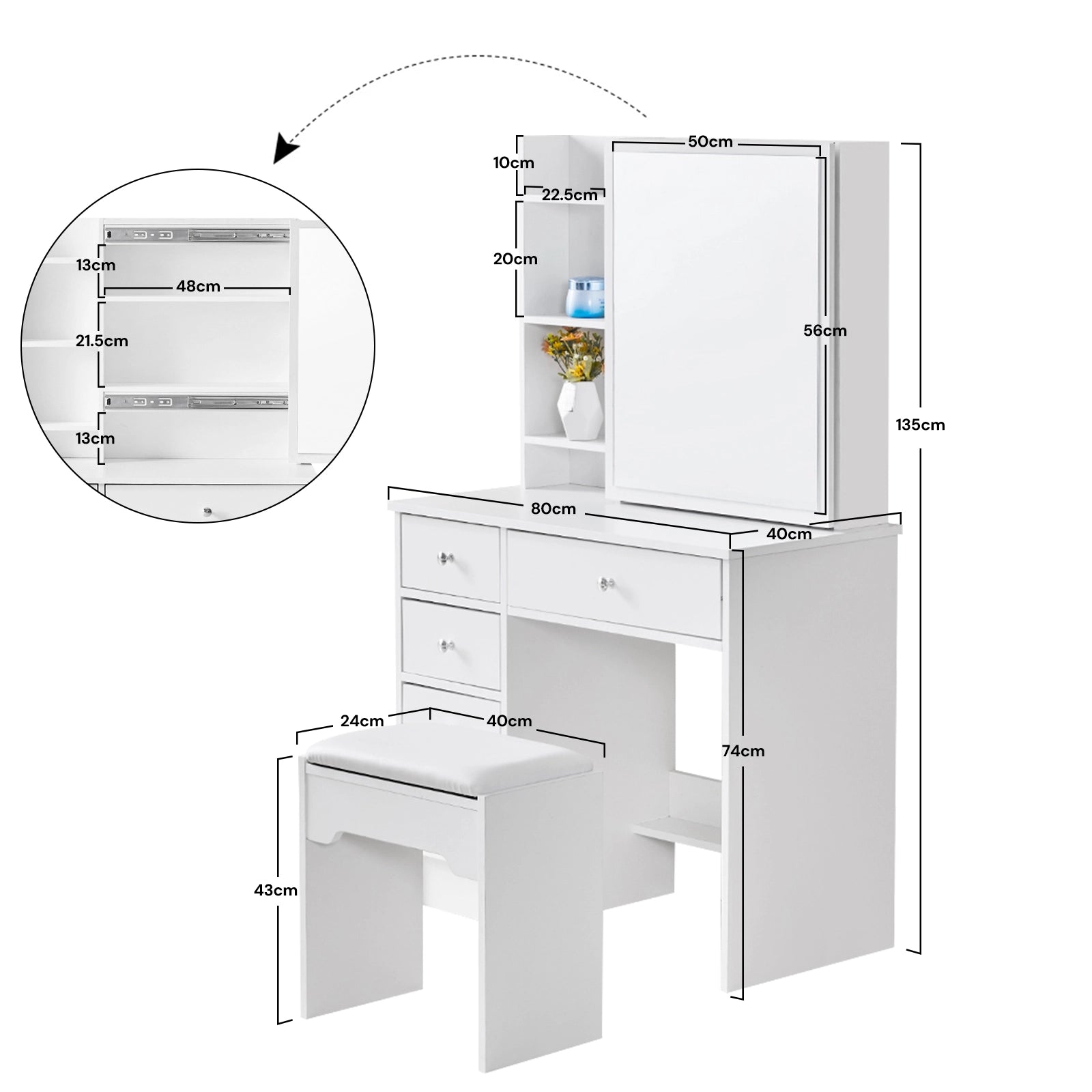 5 Drawers and 4 open shelves are perfect for storing jewellery, masks, and perfumes to meet all your makeup needs.